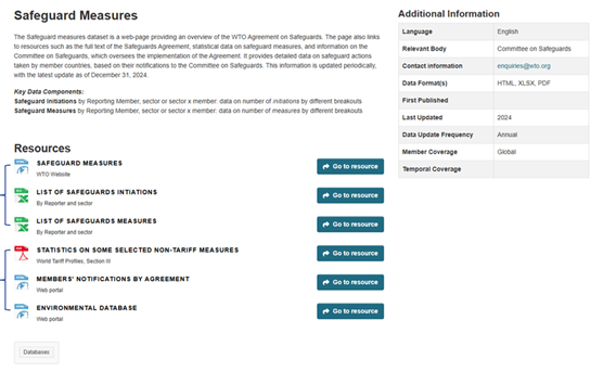 Phần dữ liệu “các biện pháp tự vệ thương mại”